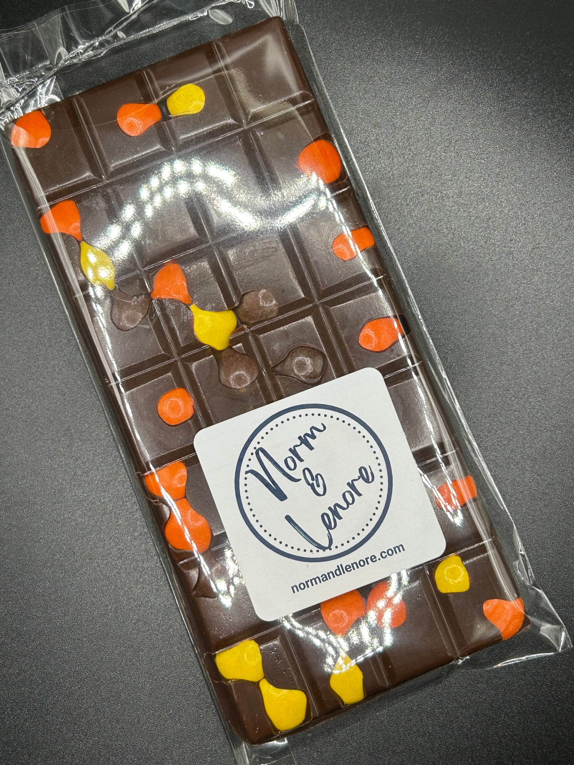 Indulge in our Dark Chocolate Reece Pieces Specialty Bar - perfect for those who can't get enough of that rich chocolate! With crunchy and creamy Reece's Pieces, this bar is what chocolate dreams are made of.