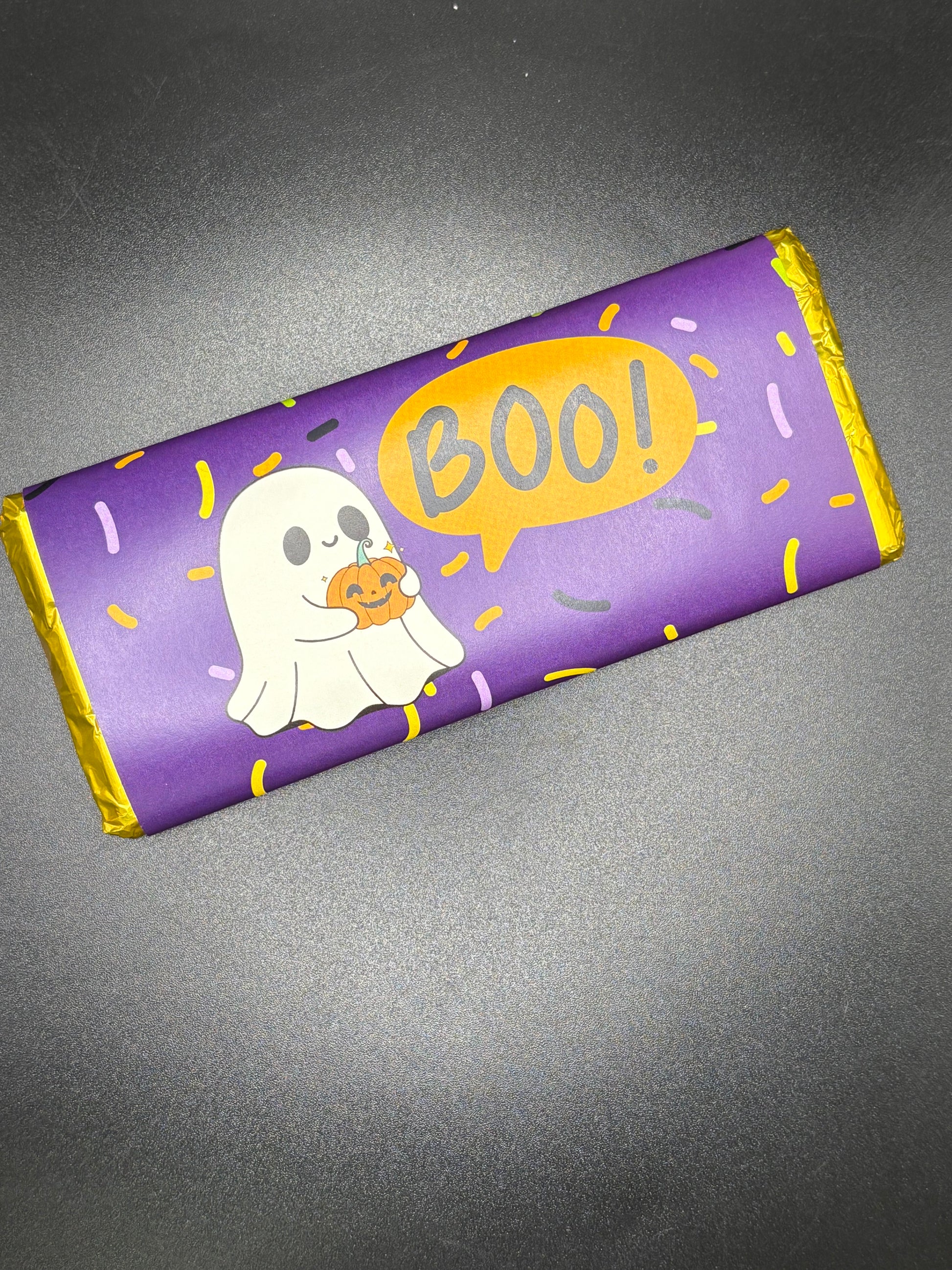 Indulge in the spooky season with our Halloween Foil Novelty Bars! Wrapped in shimmering gold foil and featuring a fun themed wrapper, these milk chocolate treats add a playful twist to your Halloween celebrations. Perfect for sharing or sneaking a sweet surprise, they bring festive cheer with every bite.