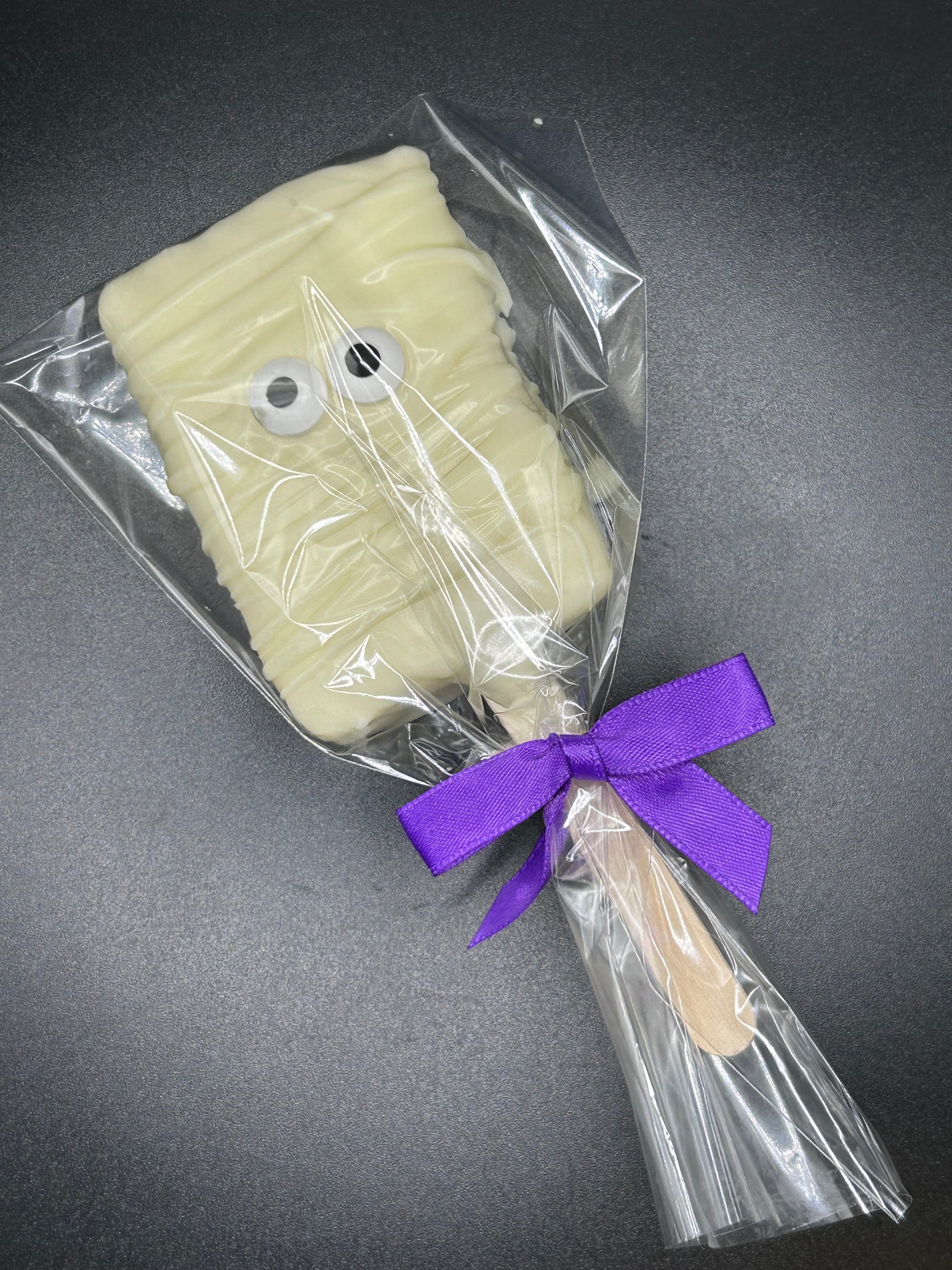 Wrap up your Halloween treats with this playful Mummy Candy Rice Krispie Square! Covered in smooth white chocolate, it’s decorated with mischievous eyes peeking through the “bandages,” making it a fun and spooky snack that’s perfect for parties or trick-or-treaters. Sweet, crispy, and delightfully festive!