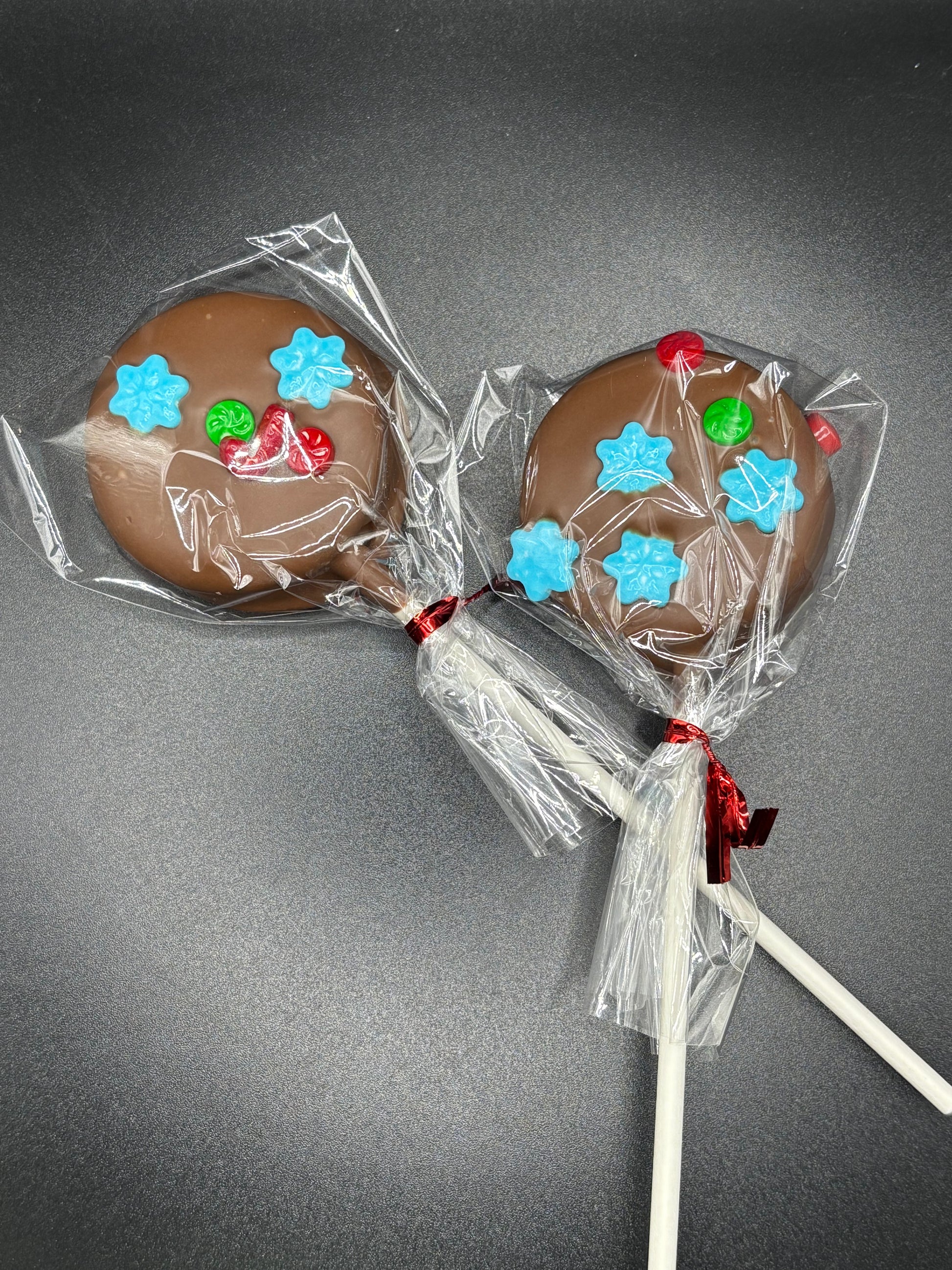 Indulge in the ultimate cookie-on-a-stick experience! Our Holiday Double Stuff Oreo Lolly features a beloved Double Stuff Oreo mounted on a convenient stick, then dipped in smooth milk chocolate and topped with festive holiday sprinkles. Perfect for satisfying your sweet tooth with a fun, handheld treat that brings seasonal cheer to every bite. A delightful twist on a classic favorite!