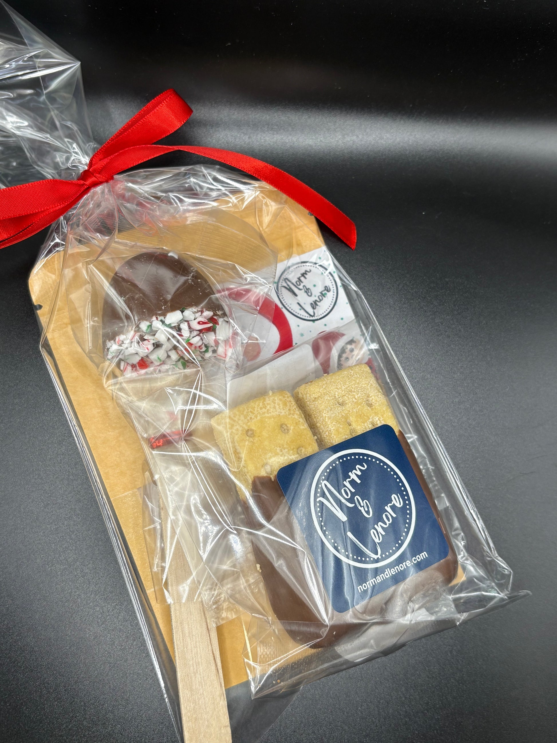 Cozy up with everything you need for the ultimate hot chocolate experience! This delightful kit bundles a rich hot chocolate packet, a creamy milk chocolate stirring spoon that doubles as a treat, and indulgent milk chocolate dipped shortbread cookies. Perfect for warming up on chilly days or sharing the comfort of homemade cocoa with someone special. Pure chocolatey bliss in one thoughtful package.