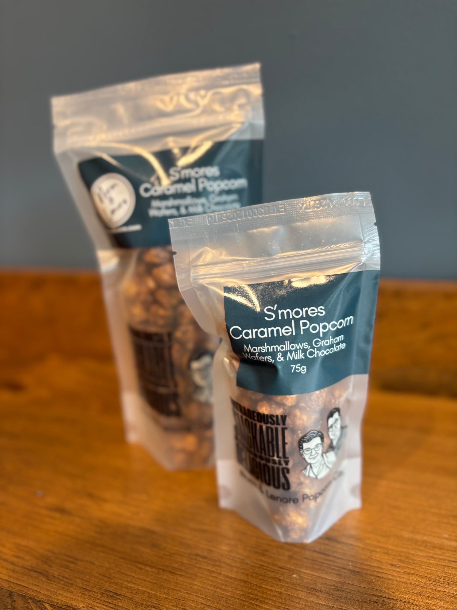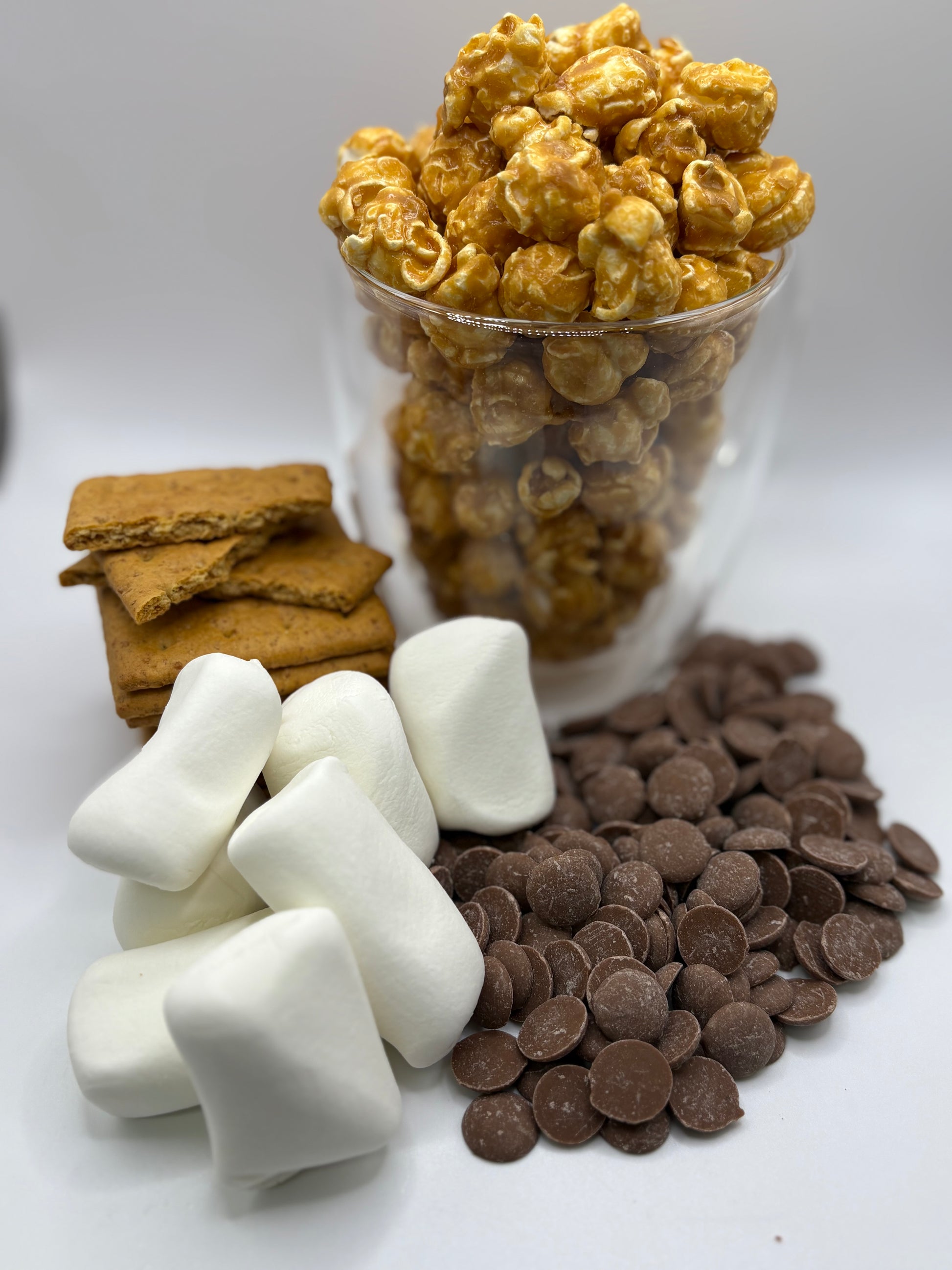 Campfire cravings meet gourmet indulgence! Soft marshmallow and golden graham cookies are layered onto caramel popcorn and covered in silky milk chocolate. The texture is delightfully surprising — first marshmallow soft, followed with a crispy finish — with real roasted s’mores flavor.